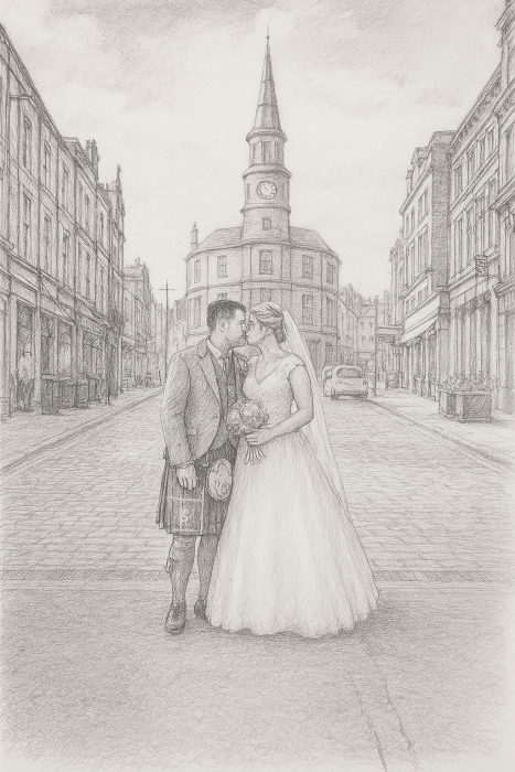 At The Golden Lion, we are devoted to making your special day is one you will cherish. At the heart of historic Stirling, The Golden Lion Hotel has been the backdrop to countless love stories from 1786. With a range of versatile and character-filled spaces, we offer everything you need to create a wedding day that truly reflects you and your desires. Our magnificent Regency Ballroom can host up to 250 guests, featuring impressive high corniced ceilings, chandeliers, a spacious dance floor, and a private bar – perfect for a grand celebration. We have 66 bedrooms, superior, family, and classic rooms. For more intimate celebrations, the beautifully styled Wallace Room offers a warm and welcoming setting. The Younger Room, with its own dance floor provides a lovely space for evening gatherings. For ceremonies or smaller receptions, the elegant Oak Room creates a charming and intimate atmosphere, perfect for saying “I do” or celebrating with your closest loved ones.